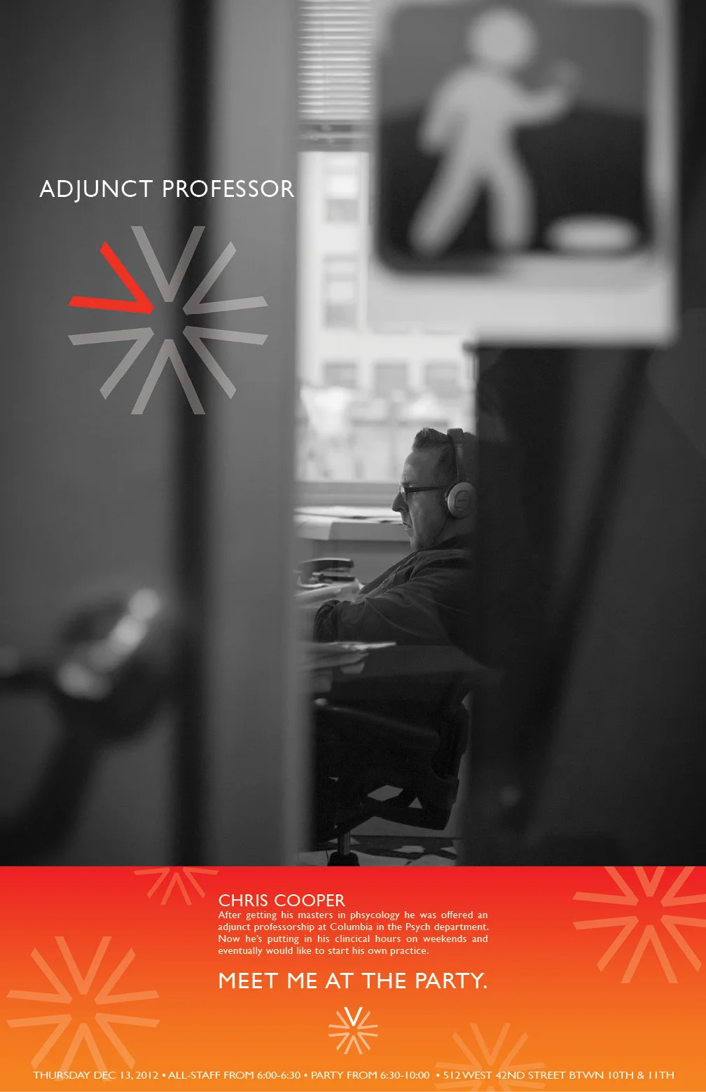 To celebrate the diverse group of employees at DIgitas, we created a poster series that highlights all of the interesting things they do both inside and outside of the office—from puppet masters to skeeball legends. Each poster ends with the cue to "Meet me at the party" and has all the event details.